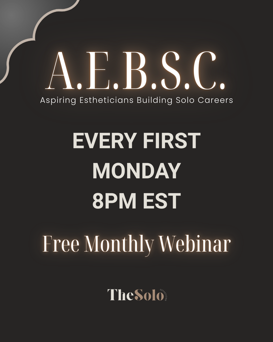 AEBSC is our signature monthly webinar designed for aspiring estheticians, current students, new graduates, and professionals preparing to transition into solo practice.