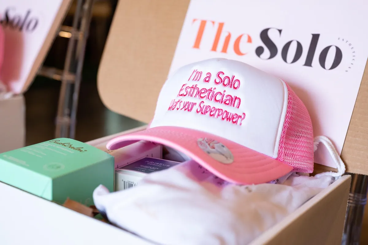 Introducing our Pink and White Trucker Hat: "I'm a Solo Esthetician. What's Your Superpower?"