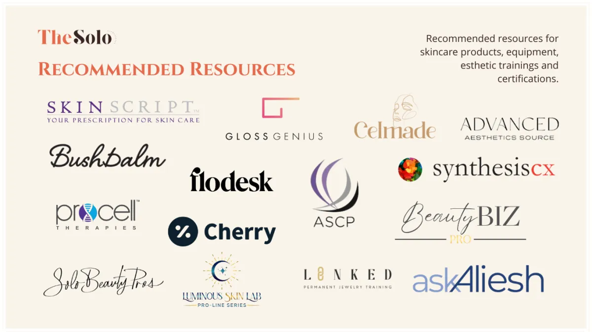 Explore our curated resources designed specifically for Solo Estheticians to enhance your business and streamline your operations. These tools provide essential support in marketing, branding, inventory management, and customer engagement, helping you to thrive in your solo practice.