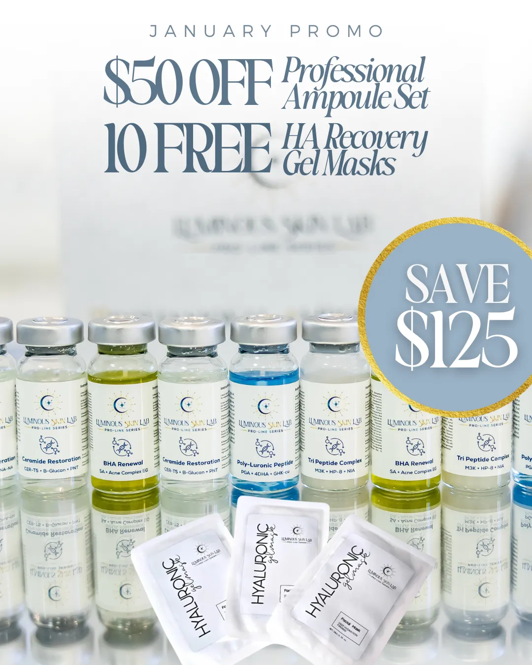 Get $50 OFF the Professional Ampoule Set plus 10 HA Recovery Gel Masks FREE ($75 value).