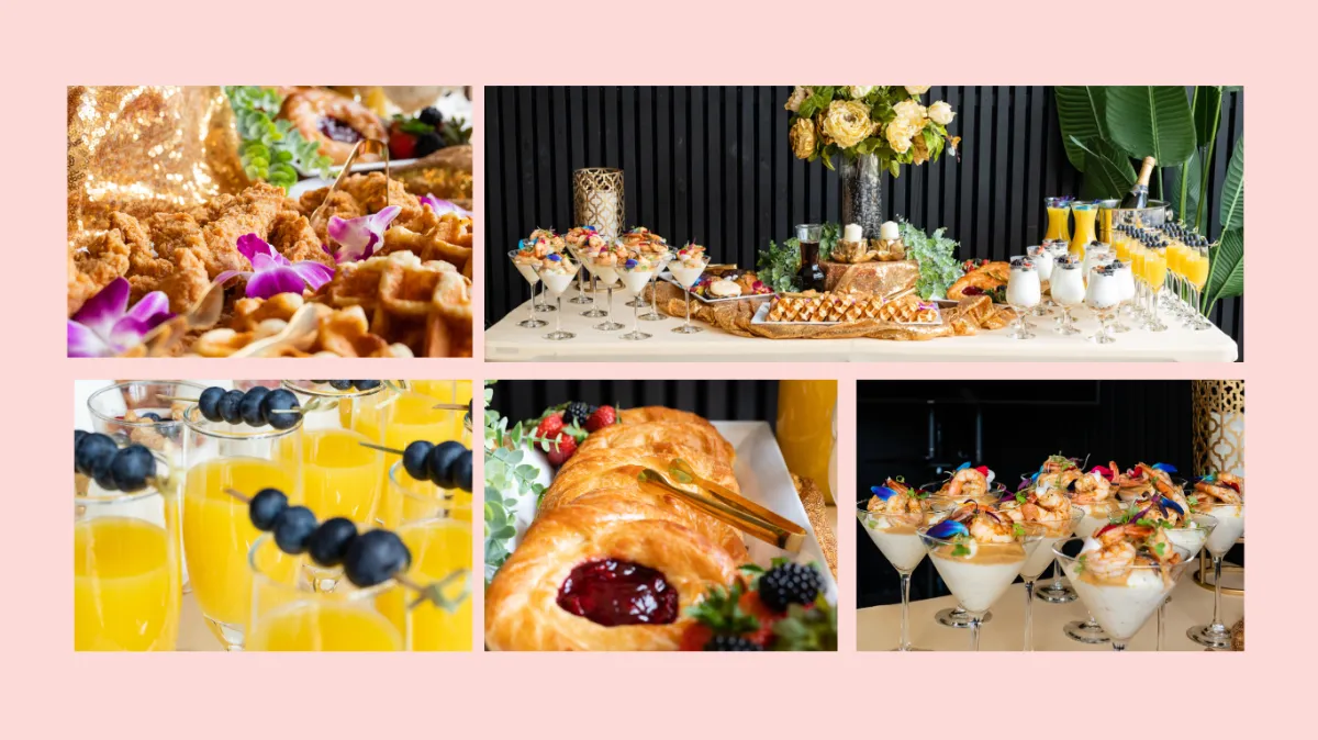 Our talented caterer, Collette, created a delicious spread of brunch menu favorites like chicken and waffles, shrimp and grits, baked goods and pastries, yogurt, fresh fruit and orange juice. See more photos below!